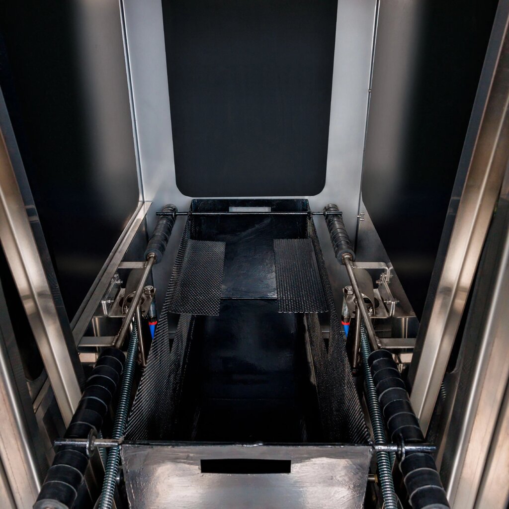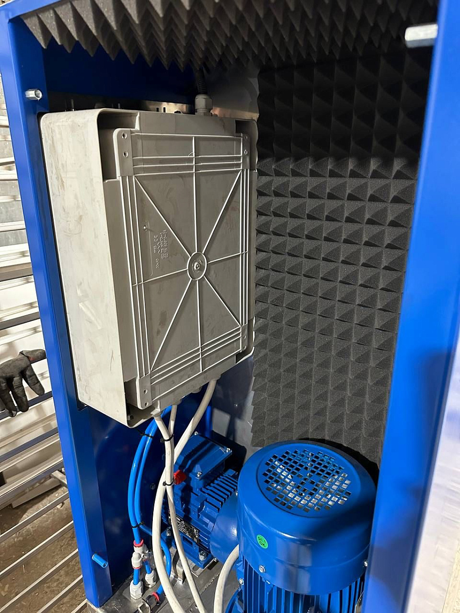 Моечная машина работает по замкнутому циклу, благодаря этому для ее подключения нужны лишь сжатый воздух и электричество. Мойка не требует подключения к водопроводу и канализации.
