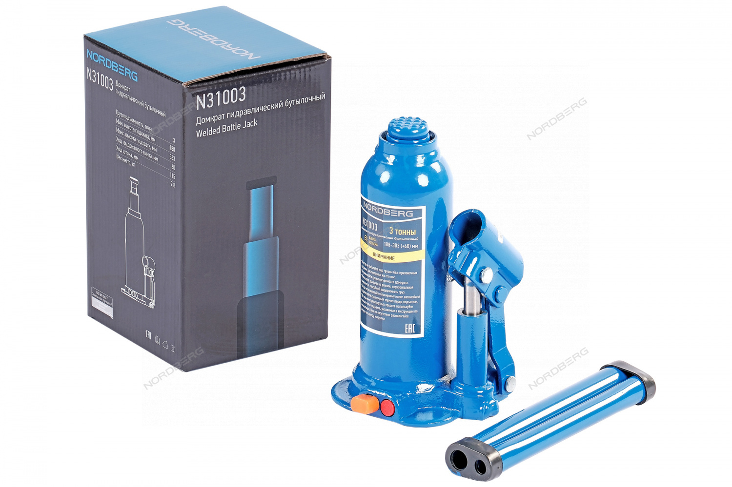 Бутылочный домкрат NORDBERG N31003 – высококачественное силовое оборудование для выполнения подъемных работ при диагностике и ремонте автомобиля в автосервисах, шиномонтажах и автотранспортных предприятиях.