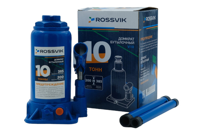 Домкрат бутылочный гидравлический ROSSVIK V10, грузоподъемность 10 тонн – надежное и доступное решение для автомастерских.
