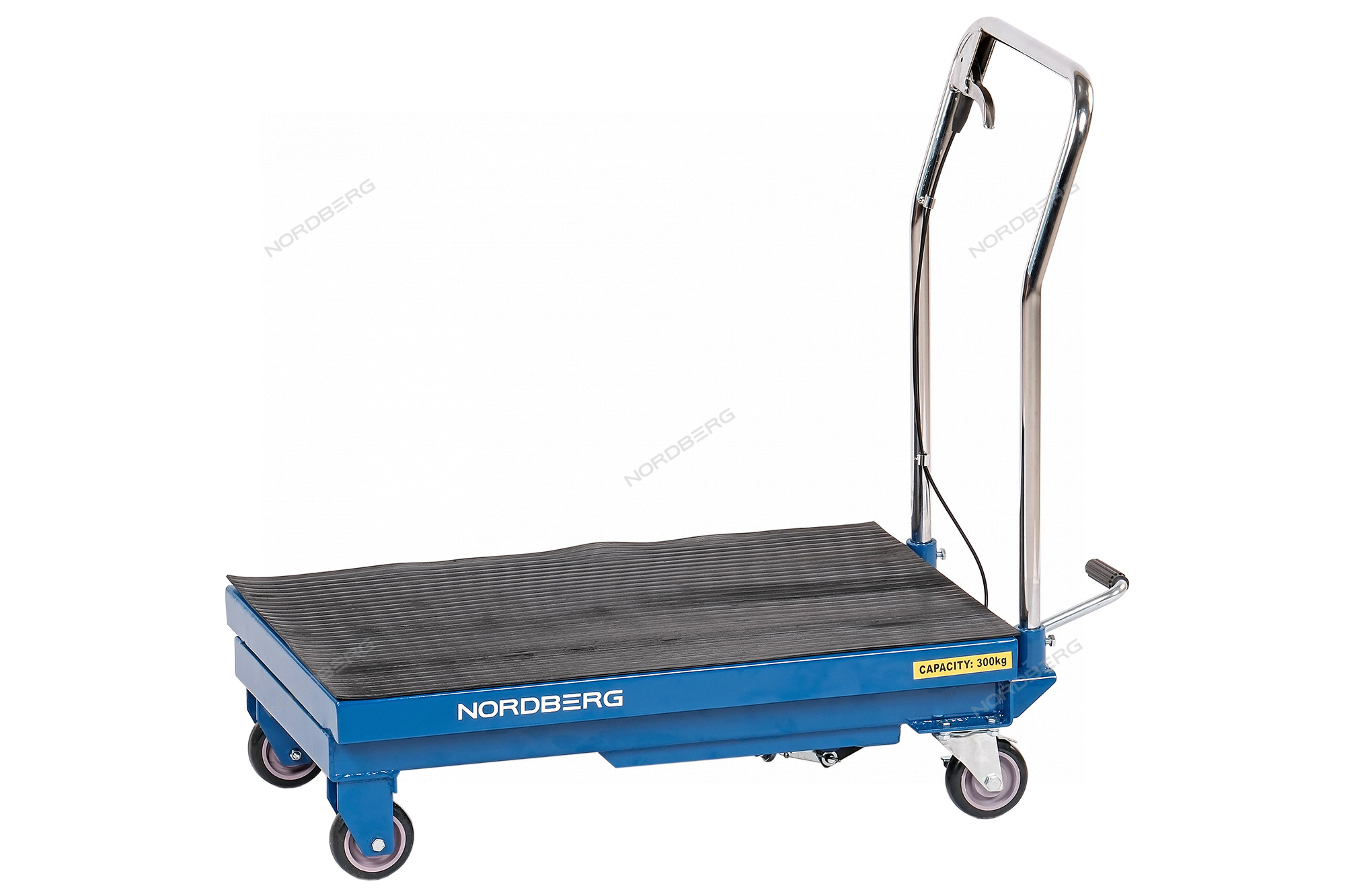 Подъемный гидравлический стол NORDBERG N3T300 предназначен для подъема, опускания и перемещения груза. Конструкция представляет собой совмещение платформенной тележки и стационарного подъемного стола. Подъемный стол имеет гидравлический ножной привод, который позволяет произвести быстрый подъем груза. Опускание производится путем нажатия рычага на ручке подъемного стола. Гидравлическая система позволяет столу опускаться плавно, обеспечивая безопасность работ с грузами. Стол позволяет не только приподнимать грузы, но и перемещать их на расстояния.