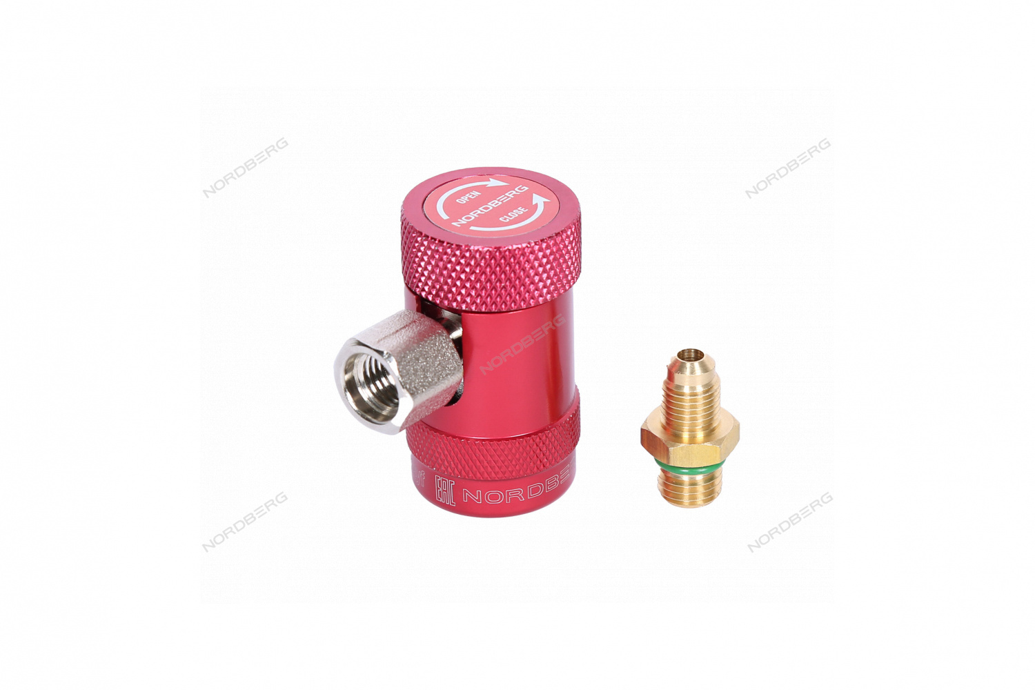 Муфта высокого давления с вентилем быстросъемная красная NORDBERG NFA9H предназначена для подсоединения к порту низкого давления автомобильного кондиционера без открытия доступа к системе циркуляции хладагента.ФУНКЦИОНАЛ