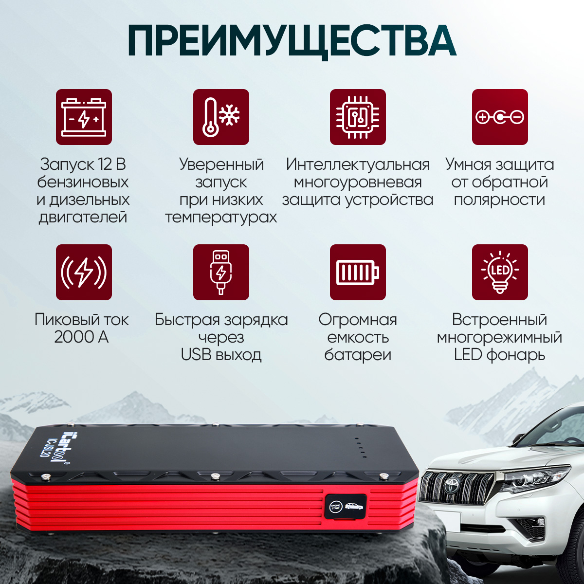 Запуск двигателя: если двигатель не запускается или вы хотите облегчить процесс запуска при сильном морозе, просто подключите устройство к АКБ и заводите автомобиль!