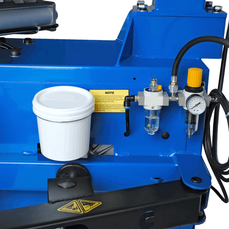 - Оснащение блоком подготовки воздуха, который включает в себя регулятор давления, масловлагоотделитель и лубрикатор.